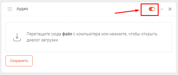 *блок активен по умолчанию, вы можете сделать его не активным по кнопке на блоке - выберите файл из папки вашего устройства и нажмите Сохранить